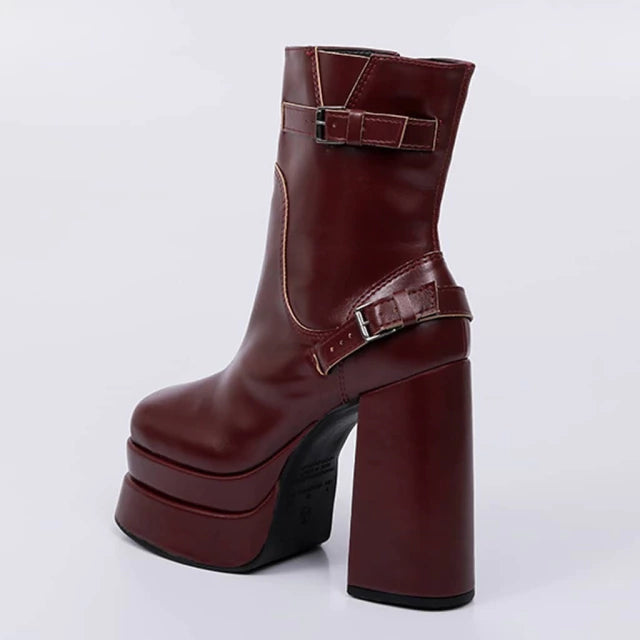 Eclipse - Bota meia pata com zíper aplicação vermelho