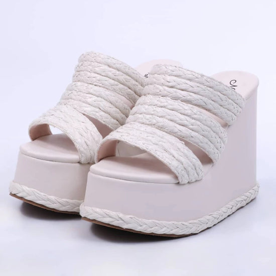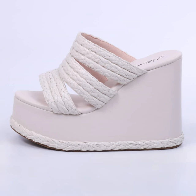 Munique - Tamanco Feminino Anabela Plataforma Off-White